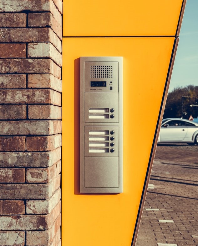 In this application, the security intercom system gives visitors a means to contact someone in the building when they arrive at the entrance door.